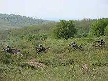 Grupă de infanterie a Armatei române în dispozitiv de apărare
