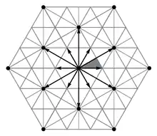 În general, fiind dat sistem de generatori, se poate construi diagrama Stiefel asociată, constând din hiperplanele ortogonale pe generatori împreună cu unele translații ale acestor hiperplane. Grupul Coxeter afin (sau grupul Weyl afin) este apoi grupul generat de reflexiile (afine) pe toate hiperplanele din diagramă.[4] Diagrama Stiefel împarte planul în infinit de numeroase componente conexe numite nișe, iar grupul Coxeter afin acționează liber și tranzitiv asupra nișelor, la fel cum grupul Weyl obișnuit acționează liber și tranzitiv asupra camerelor Weyl. Figura din dreapta ilustrează diagrama Stiefel pentru sistemul de generatori .