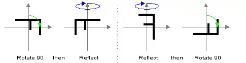 rotit cu 90°, reflectat, reflectat după y, reflectat după y și rotit cu 90°