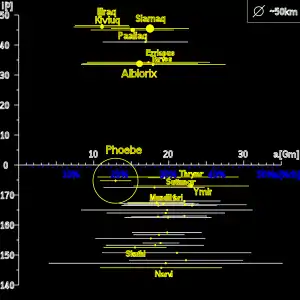 - Gladman, B. J.; Nicholson, P.; Burns, J. A.; Kavelaars, J. J.; Marsden, B. G.; Holman, M. J.; Grav, T.; et al. (). „Discovery of 12 satellites of Saturn exhibiting orbital clustering”. Nature. 412 (412): 163–6. doi:10.1038/35084032. PMID 11449267.