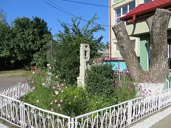 Statuia se află pe un postament din piatră cioplită cu dimensiunile 0,87 metri x 0,46 metri, aflat la rândul său pe un soclu din beton cu înălțimea de 1,53 metri, lungimea de 0,94 metri și lățimea de 0,56 metri.