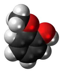 Guaiacolul este un compus organic natural cu formula C6H4(OH)(OCH3). Este sintetizat de o mare varietate de organisme,[4] precum speciile din genul Guaiacum. Este și un component al creozotului de lemn, al uleiurilor volatile din semințele de țelină, frunzele de tabac și de portocal și în coaja de lămâie.[5] Guaiacolul conferă aromă în cazul unor băuturi, precum: whisky[6] și cafea.[7]