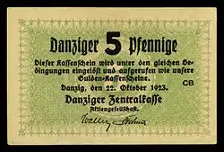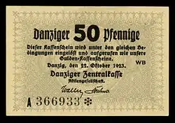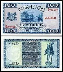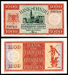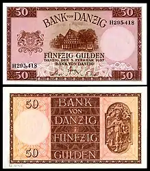 Au circulat bancnote ale guldenilor din Danzig cu valorile nominale de 1, 2, 5, 10, 25 și 50 pfennigi și de 1, 2, 5, 10, 20, 25, 50, 100, 500 și 1 000 guldeni.