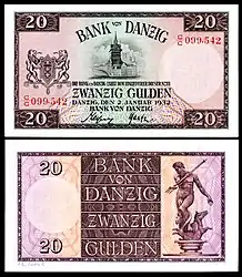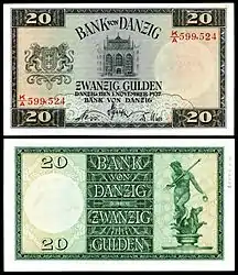 Bancnotă cu valoarea nominală de 20 de guldeni din Danzig (1 noiembrie 1937)