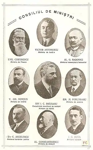 - Ion Gh. Duca (4 ianuarie 1914 - 10 decembrie 1916)
