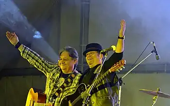 Mircea Baniciu (dreapta) și Mircea Vintilă ca soliști ai Pasărea Colibri, aprilie 2012