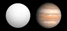 ![]() Comparația dimensiunii lui HAT-P-12b cu Jupiter. | |