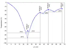 Temperatura de topire funcție de concentrația HCl în apă.[19][20]
