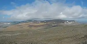 Cel mai înalt punct al Finlandei, Haldičohkka și borna de frontieră 303B (în mijlocul imaginii), văzute dinspre est