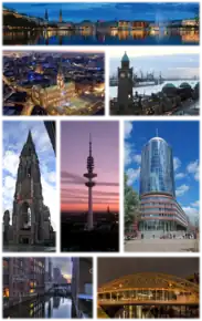 | — land, oraș mare, oraș hanseatic[*], oraș imperial liber, oraș port[*], metropolă, Einheitsgemeinde[*], comună urbană[*], oraș-stat și urban district of Hamburg[*] — | |||