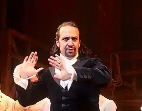 ![]() Lin-Manuel Miranda în rolul titular al musicalului său „Hamilton”, 20 aprilie 2016 | |