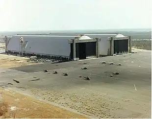 Hangarul nr. 2 pentru dirijabile de la inceputul anului 1942 la Tustin, California (lungime 304 m, lățime 91 m[1]).