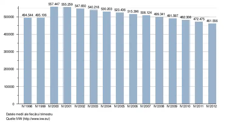 Numărul mediu de exemplare vândute pe trimestru prin abonamente