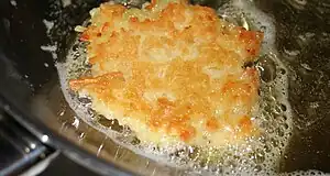 Hanuka mai este marcată prin consumul de alimente prăjite în ulei. Cele mai importante sunt tortul de cartofi, un fel de chifteluțe cu cartofi aplatizate, numite latches, care se pot servi cu sos de mere.
