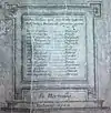 În dreapta medalionului a fost plasat următorul text (tot în limba greacă): „Tabula geografică a prea înălțatei domnii a Ungrovlahiei împărțită în șaptesprezece județe, după descrierea și forma foarte exactă pe care a făcut-o prea nobilul, prea învățatul și prea înțeleptul boier, stolnicul Constantin Cantacuzino, pentru documentarea prea eminentului medic-filozof Ioan Comnen. Acum pentru întâia oară tipăriă cu litere grecești și închinată în chip respectuos prea învățatului ..., domnului Ioan Constantin Basarab, de către Hrisant previstierul...”.