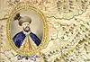 În colțul din stânga sus se află, în medalion, portretul domnitorului Constantin Brâncoveanu, având de jur împrejur o propoziție (în limba greacă) în care se menționează cine este cel din portret.