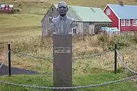 Bustul lui Heðin Brú din oraşul său natal Skálavík