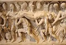 detaliu de basorelief de pe un sarcofag roman de marmură, circa 180-200 e.n.