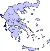 - Lefkada / Leucada (Λευκάδα, mai demult Insula Sfânta Maura), având capitala la: Lefkada / Leucada.