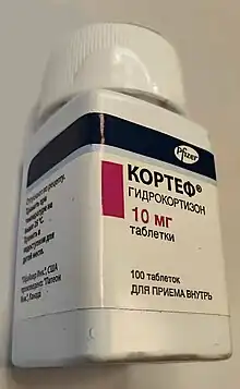 Hidrocortizonul este numele hormonului cortizol atunci când este administrat ca medicament[1]. Printre afecțiunile în care este utilizat se numără insuficiența suprarenală, sindromul adrenogenital, un nivel ridicat de calciu din sânge, tiroidita, artrita reumatoidă, dermatita, astmul bronșic și BPOC[2]. Acesta este tratamentul preferat pentru insuficiență adrenocorticală[3]. Poate fi administrat pe cale orală, local sau prin injectare. Oprirea tratamentului după utilizarea pe termen lung trebui să fie făcută gradual.