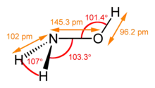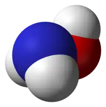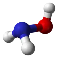 Hidroxilamina este un compus anorganic cu formula chimică NH2OH. În stare pură, este un compus solid, cristalin, instabil și higroscopic.[4] De aceea, este regăsită sub formă de soluție apoasă și este utilizată ca reactiv pentru obținerea oximelor. De asemenea, este un intermediar al procesului biologic de nitrificare, proces în care oxidarea amoniacului (NH3) la hidroxilamină este mediată de enzima amoniu-monooxigenaza (AMO).[5] Hidroxilamin-oxidaza (HAO) oxidează hidroxilamina la ion nitrit.[6] Hidroxilaminele sunt derivații substituiți ai hidroxilaminei (în acest caz, -NH-OH poate fi considerată a fi o grupă funcțională).