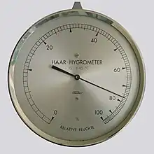 Principiul de funcționare a higrometrului cu fir de păr (sau de capron), se bazează pe modificarea lungimii firului în funcție de umiditate. Higrometrul cu firul de par este un aparat de măsură de tip mecanic. În ultimul timp multe higrometre sunt construite cu funcționare electronică.
