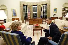Hillary Diane Rodham Clinton, născută Hillary Diane Rodham, (n. , Chicago, Illinois, SUA) a fost din 2009-2013 secretar de stat în administrația Barack Obama, a fost senator de New York în Senatul Statelor Unite ale Americii din partea Partidului Democrat din 2001 până în 2009. Hillary Clinton este căsătorită cu Bill Clinton, cel de-al patruzeci și doilea președinte al Statelor Unite ale Americii (între anii 1993 și 2001). Hillary Clinton este de profesie avocat.
