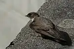 | Riparia riparia (Linnaeus, 1758)[57][58] | Lăstun de mal, Rândunică de mal, Rândunică de apă, Rândunică de ploaie, Rândunea de pământ. | Riparia riparia riparia (Linnaeus, 1758) | Oaspete de vară, cuibărește | În România populația cuibăritoare este estimată la 45.000-90.000 de perechi. | ![]() | |