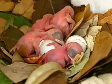 Puii se nasc goi și cu ochii inchiși.[21] După ce le cresc penele, puii apar de obicei ca versiuni mai șterse ale adultului.[22]
