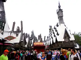 În seria de cărți și filme „Harry Potter”, satul Hogsmeate este singurul sat din Marea Britanie în care locuiesc numai vrăjitori. Elevii de la Hogwarts puteau să-l viziteze câteodată în weekend, dar numai cei din anii 3, 4, 5, 6 și 7. Elevii vizitau aleea principală, unde erau diverse magazine, cum ar fi Zonko's și Lorzii Mierii. De asemenea, ei admirau și Urlet în Noapte. În Hogsmeade era și gara unde ajungea, sau de unde pleca, Expresul de Hogwarts.
