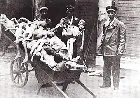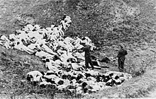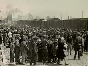 ![]() Evrei pe rampa de selecție a unui lagăr de exterminare |