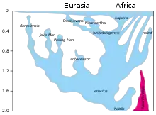 Vârsta speciației H. sapiens din strămoșul H. erectus (sau o specie intermediară precum Homo antecessor) se estimează că a avut loc cu aproximativ 300.000 de ani în urmă. Este cunoscut faptul că încrucișarea arhaică a avut loc atât în Africa cât și în Eurasia, între aproximativ 100.000 și 30.000 de ani în urmă.