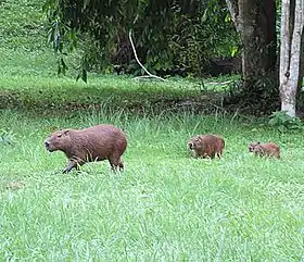 . - Harold Trapido (). „Gestation period, young, and maximum weight of the isthmian capybara, Hydrochoerus isthmius Goldman”. Journal of Mammalogy. 30 (4): 433. doi:10.1093/jmammal/30.4.433.