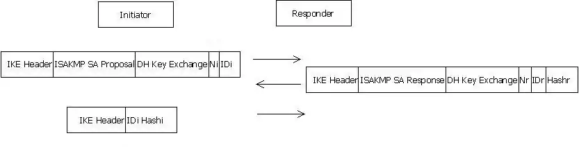 • Modul principal cuprinde un număr de șase mesaje care se schimbă între inițiatorul și responderul de IPsec.