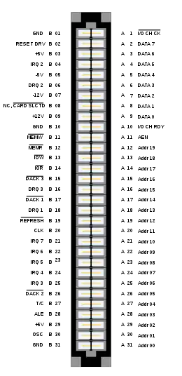 Cele două versiuni se disting ca magistrală XT și respectiv magistrală AT în raport cu computerul pe care au fost implementate. Pentru conectarea cardurilor de extensie, pe placa de bază este prevăzut un conector special, de obicei negru. Un conector cu 62 de sloturi este prevăzut pentru magistrala XT, în timp ce pentru magistrala AT există un conector cu 98 de contacte.