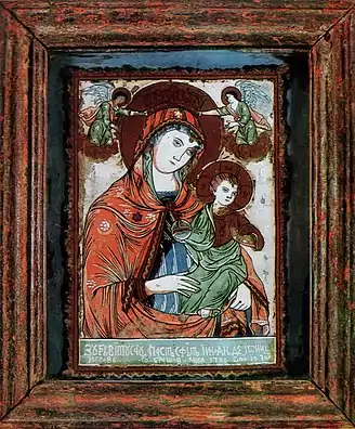 Cea mai veche icoană pe sticlă din Brașov, care este datată și semnată, este un portret al Maicii Domnului Împărățită. Soții Dancu au constatat că icoana nu prezintă niciuna din caracteristicile icoanelor de la Nicula. Pe lucrare se vede o inscripție, în felul obișnuit al pictorilor de biserici care spune că „... Zugrăvitu-sau această sfântă icoană de Ioniță zugravu ot Brașov. Anul 1780 octo(mbrie) 10 zile”. Lucrarea este una lirică, cu o linie plină de eleganță și grație, fapt care induce ideea că Ioniță zugravu era un pictor de icoane pe lemn și frescă. Juliana Dancu a fost de părere că această piesă este una unicat, datorită unei execuții pline de finețe, îngrijită. gama cromatică pare a fi una folosită de zugravii de pe Valea Sebeșului, datorită acordului dintre un roșu-sângeriu cu verdele-crud folosit pe un fond alb.[6]