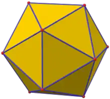 | Proprietăți | Poliedru semiregulat (permutoedru, zonoedru) convex cu fețe poligoane regulate, tranzitiv pe vârfuri |