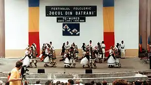 „Ia țigane arcu-n mână Și zâ-i una la găină, Zâ-i țigane, zi cu drag Să mă pot sui pe prag. Zâ-i țigane, zâ-i frumos Să mă pot coborî jos Zâ-i țigane de la ușă Să mă scutur de cenușă. Că de când m-am măritat Eu nu m-am mai scuturat. Faceți-mi loc ca să viu Cu poalele prinse-n brâu. Faceți-mi un pic de loc Găina trebuie s-o joc. Că asta-i găină sură Și-i crescută p-îngă șură…”