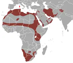 Hoffmann și Smith au luat în considerare doar arealul din sudul Africii, considerând că populațiile din estul Africii, Arabia și Orientul Apropiat și nord-vestul Africii s-ar putea să formeze fiecare trei câte o specie diferită.[1]