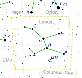 | Cea mai strălucitoare | β Lep (Arneb) (2,58m) |