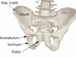 Împreună cu oasele ischium și pubis, formează osul coxal.