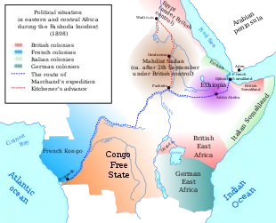 În martie, a fost semnată Convenția anglo-franceză din 1898 ajungându-se la un acord conform căruia izvoarele fluviilor Nil și Congo marcau frontiera dintre sferele de influență ale celor două puteri. Incidentul Fashoda a fost ultima dispută colonială serioasă dintre britanici și francezi, iar soluția clasică diplomatică este considerată de cei mai mulți istorici ca fiind precursoarea Antanta cordială.[16]