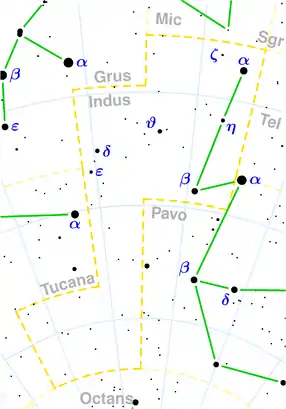 ![]() Harta constelației Indianul (click pentru mărire) | |