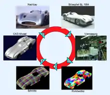 Pentru stabilirea dimensiunilor obiectului fizic, se mai folosesc tehnologii 3D de scanare cum ar fi mașinile de măsurat în coordonate (CMM), scaner de triangulație cu laser, scaner cu lumină structurată și tomografie industrială computerizată. Datele măsurate, sunt de obicei reprezentate ca nori de puncte.[1]
