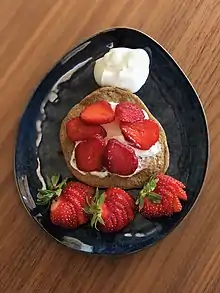 Clătite din pudră de insecte, servite cu căpșuni și skyr - Greieri de casă (Acheta domesticus)