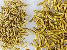 - Viermi de făină mai mici (Alphitobius diaperinus) ca larve