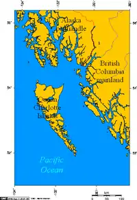 Poziţia insulelor Haida Gwaii în largul coastelor nordice ale Columbiei Britanice