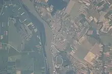 ![]() Ostrov (na leteckém snímku na levé straně od řeky Dunaje) a město Vukovar | |