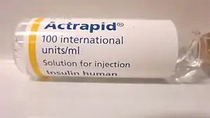- „Rezumatul caracteristicilor produsului - Actrapid 40 unități internaționale/ml soluție injectabilă” (PDF). Agenția Europeană a Medicamentului. Accesat în .