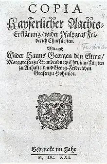 - Georg Frederic de Hohenlohe - datorită alegerii și înscăunării lui Frederic ca rege al Boemiei;